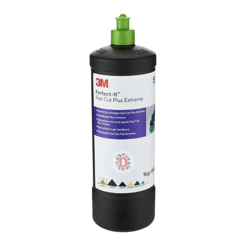 3M™ Perfect-It™ Fast Cut Plus Extreme è una pasta abrasiva dal taglio rapido, progettata per rimuovere velocemente i segni carteggiatura lasciati dai dischi di finitura in grana P1500 e P3000. Usala con il tampone verde della gamma con codice colore 3M™ Perfect-It™.