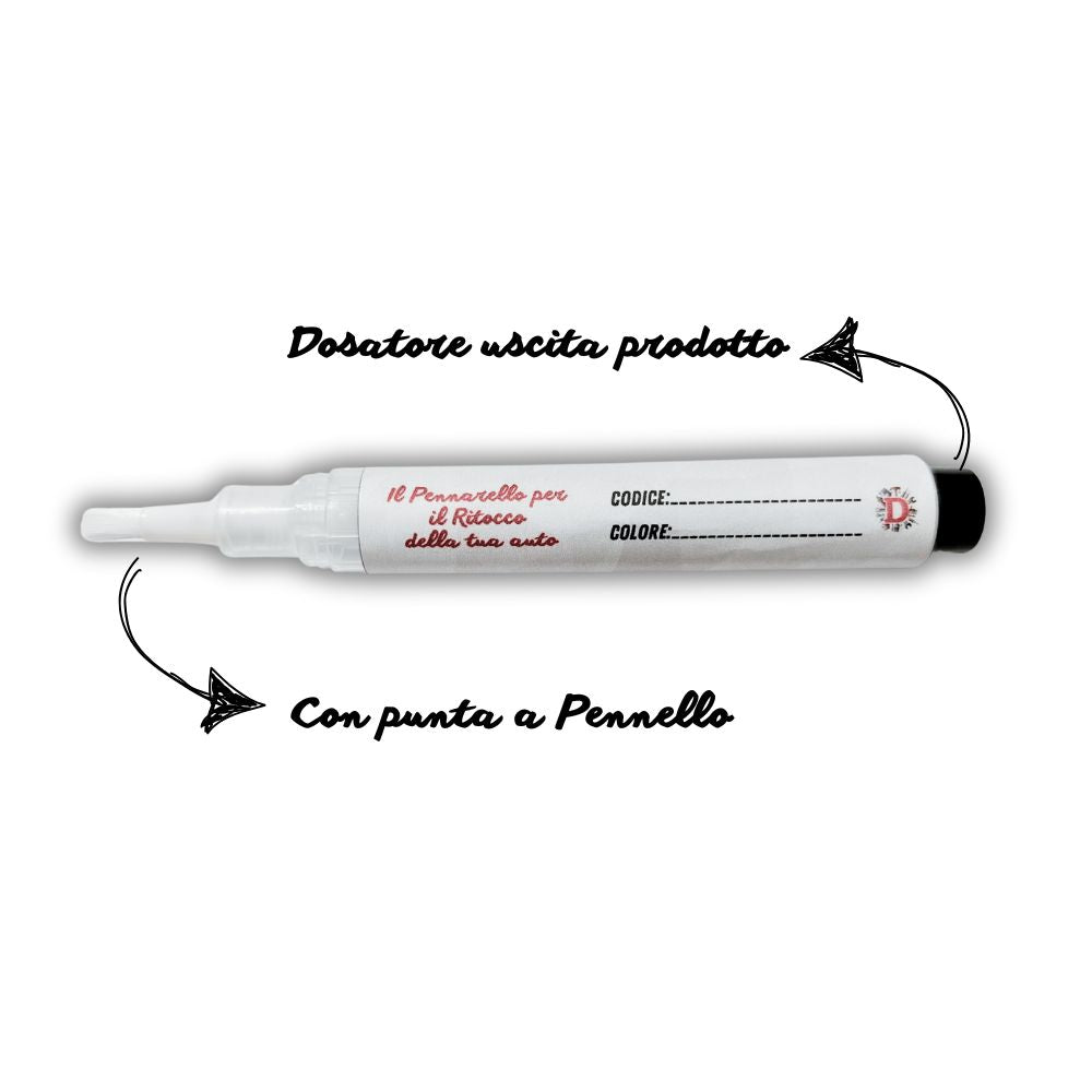 Riceverai comodamente a casa tua il pennarello già pronto all'uso, personalizzato e di qualità professionale, resistente agli agenti atmosferici e durevole nel tempo. Non lasciare che piccoli graffi compromettano l'estetica della tua auto: ordina subito e ripristina facilmente il colore originale della carrozzeria!