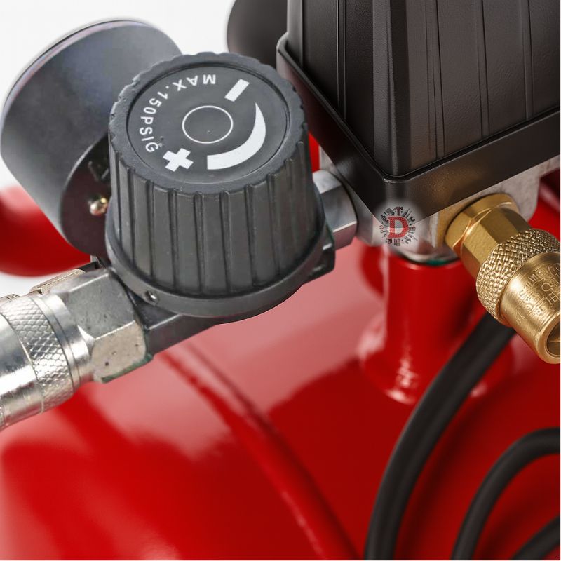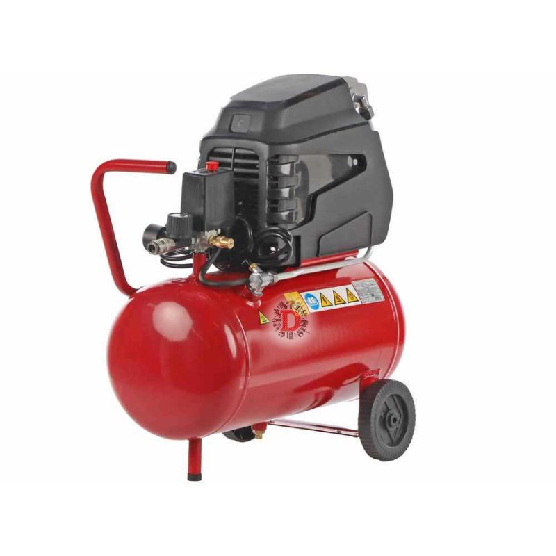 Compressore d’aria elettrico compatto e potente da 2 HP con serbatoio da 24 litri, ideale per uso hobbistico e semi-professionale. Equipaggiato con motore monofase, pompa lubrificata ad olio e maniglia ergonomica per il trasporto. Pressione massima di 8 bar, perfetto per gonfiaggio, soffiaggio, verniciatura leggera e piccoli utensili pneumatici.