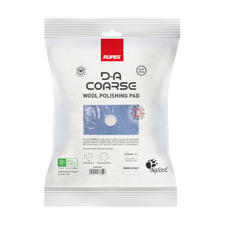 Il pad in lana Blu è stato progettato specificamente per l'utilizzo con utensili rotorbitali, ideale per rimuovere efficacemente difetti gravi dalla vernice del veicolo. Questo pad presenta una spugna blu che è sia più rigida che più densa, migliorando così il trasferimento del movimento dell'utensile alla superficie lavorativa e aumentando la capacità di taglio.