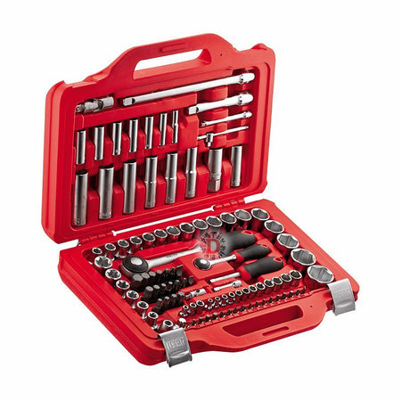 Set professionale da 82 pezzi con bussole, chiavi combinate e accessori indispensabili per la manutenzione auto.
